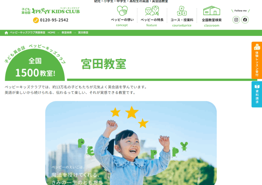 ホームページURL https://www.peppy-kids.com/classroom/detail.php?kid=189&utm_source=google&utm_medium=map&utm_campaign=MapTop&utm_content=%E5%AE%AE%E7%94%B0_189