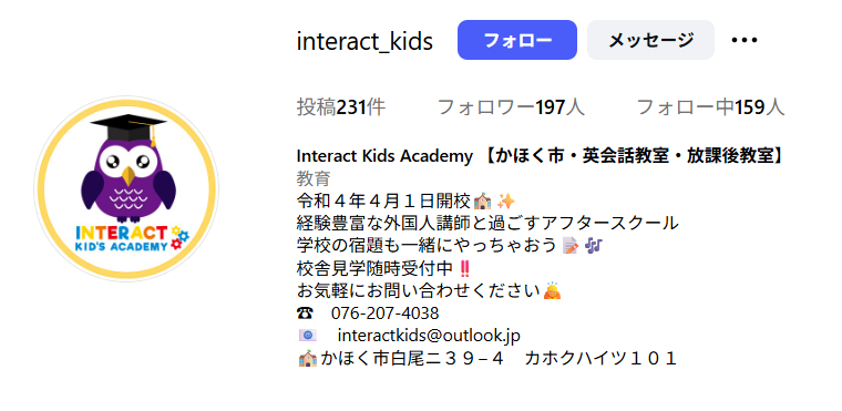 ホームページURL | https://www.instagram.com/interact_kids/ |